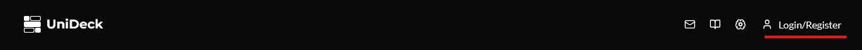 If you've been using UniDeck without an account and are ready now, just click **Login/Register** in the top right of the app to begin.